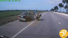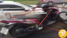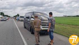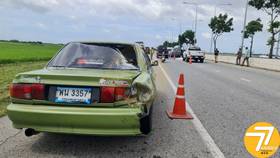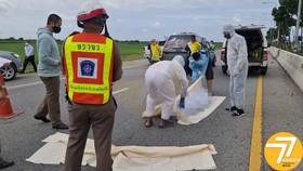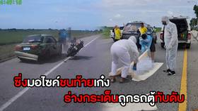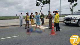 หนุ่มซิ่งจักรยานยนต์ชนท้ายรถเก๋งที่จอดอยู่ริมถนนเลียบรันเวย์ สนามบินสุวรรณภูมิ ร่างกระเด็นถูกรถตู้ที่ขับตามหลังมาทับดับสยอง